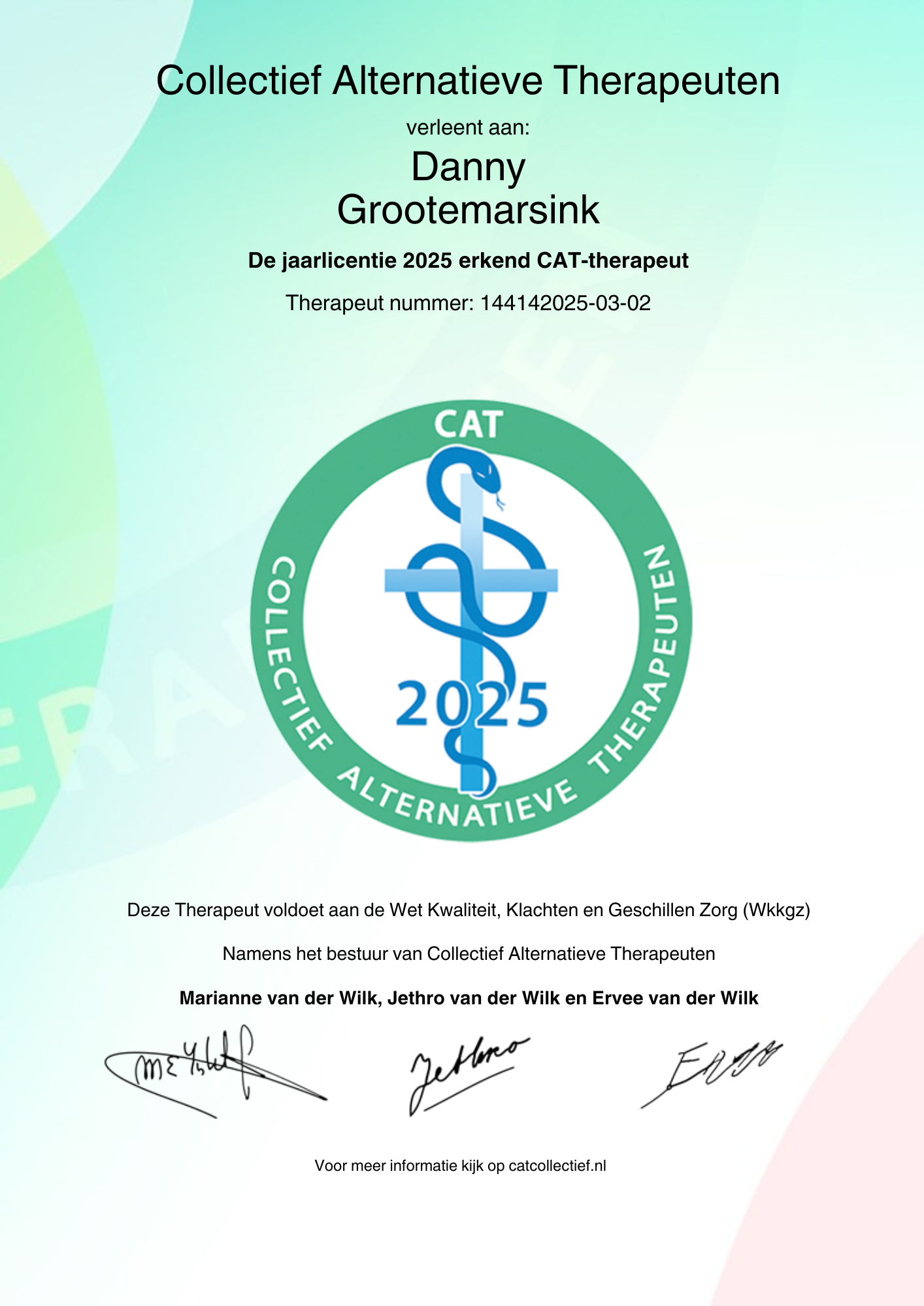 Ik val als CAT-therapeut onder GAT-Wkkgz klachtrecht en GAT-tuchtrecht bij de Geschilleninstantie Alternatieve Therapeuten (GAT). Voor meer informatie over mijn klachtenregeling zie: gatgeschillen.nl